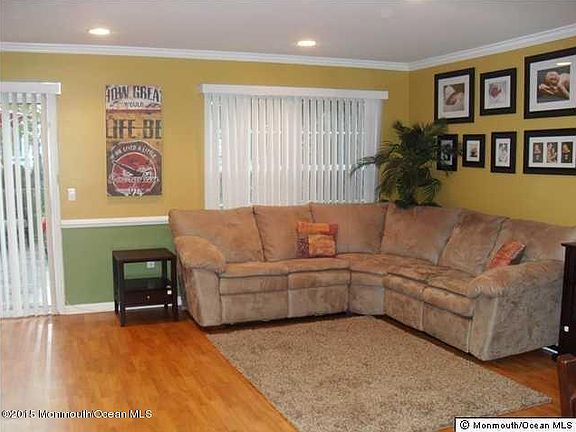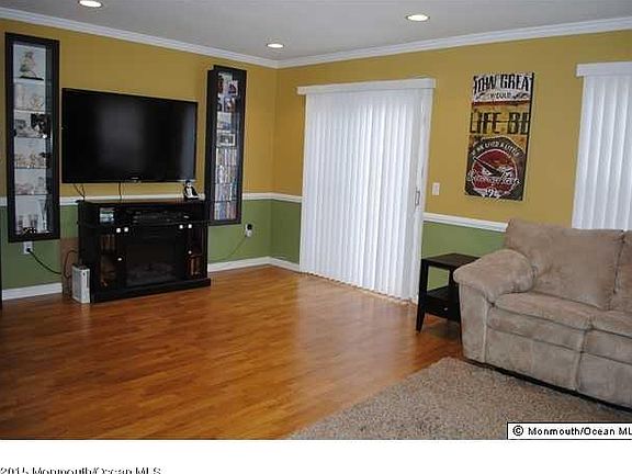 Open concept and modern townhouse at Mill Creek Island in Bayville. This charming and affordable home features a spacious family room on the main level with a sliding door out to the back deck, plus a separate dining area, eat in kitchen with newer stainless steel appliances, powder room and foyer entry way. The second level has 2 spacious bedrooms and 2 full baths, including the master suite with a walk in closet and full bath, plus laundry room and bonus storage space. You will find recess lighting, chair molding and plenty of closet/storage space. This is a quiet spot in the community with a covered front porch and plenty of parking in the open lot. Great location and value at this price, check it out today!