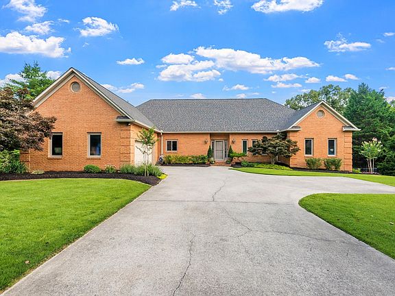 This beautiful custom built all brick home is located in Rivers Run one of Oak Ridge's most sought after neighborhoods. This quality home sits on nearly an acre on a private cul-de-sac with seasonal lake and mountain views. The home boasts 7 large bedrooms and 3.5 baths with over 5308 sq. ft. of living space with massive storage throughout and a temperature controlled workshop area. Recent updates include a new 30 year architectural shingle roof, new Trane cooling and heating system, new natural gas water heater, newer energy efficient windows, and kitchen/bath renovations. Located on the Main Level floor, modern and traditional finishes come together with an Open Concept design featuring sleek engineered hardwood floors, vented gas fireplace, large windows that flood the room with natural light, and tasteful fresh paint selections throughout.