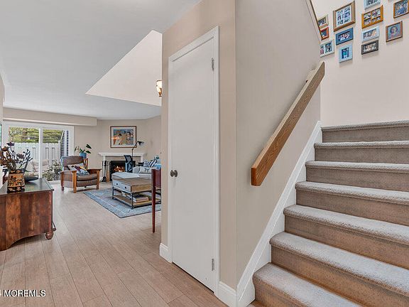Spacious 2 Bedroom, 2.5 Bath End Unit Townhome conveniently located in Northern Tinton Falls. Offering a large Living Room with vaulted ceilings, hardwood floors and wood burning Fireplace open to the Dining area. Eat-in updated Kitchen with SS appliances and granite counters. Sliders welcome you to the private fully fenced in patio with storage shed. Second level boasts a large Primary Bedroom with 2 closets, private updated full Bath and balcony. 2nd spacious Bedroom with walk-in closet and additional full Bath. 2nd level Laundry. One car attached direct entry garage and driveway wide enough for 2 cars. Newer Roof and Siding. Conveniently located close to shopping, restaurants, schools and transportation. Pet friendly community.