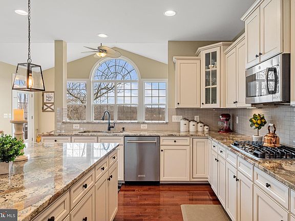 Premium cul-de-sac 0.59 acre lot backing to farmland. Newer KHov Fairhope model with over 5,300 sq. ft, bumpouts on 3 finished levels. Gourmet kitchen with granite, upgraded white cabinets with glaze, backsplash, upgraded stainless appliances including gas cooktop, double oven. Optional sunroom addition with large light-filled windows, fantastic views. Two story family room with stone gas fireplace and coffered ceiling. Main-level office. Designer touches including Ballard light fixtures, decorator wallpaper and designer paint colors. Primary bedroom with tray ceiling, decorator finishes and luxury primary bath. Finished walkout lower level with 5th bedroom, full bath and rough in for wetbar. Outdoor living with fenced backyard, dual stone patios, deck, playset, fire pit. Located just minutes to Rt. 7 and Purcellville for shopping, restaurants.