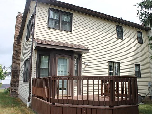 Lovely end unit in Pumpkin Hill. 2 Bedrooms with 1.5 baths. Gas fireplace in the living room with vaulted ceilings and sky lights . Open kitchen, dining area with access to the deck. Enjoy the convenient location to Chili Center. Clubhouse with pool, and tennis court to enjoy.