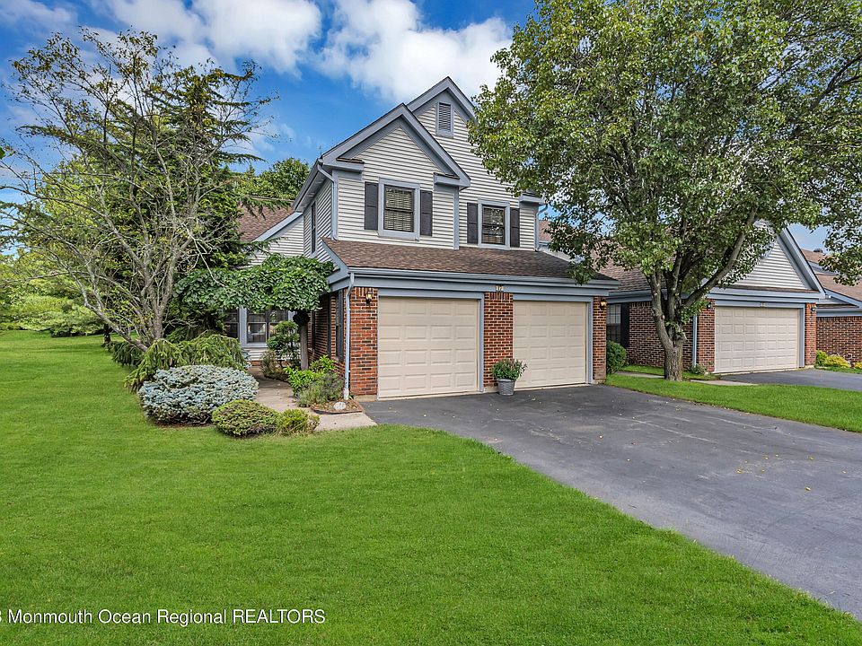 The Wellington is the largest unit in The Manor. This end unit is at the end of Rawson Cir w/ open space & park like setting off patio for maximum privacy. This bright & spacious 3 BR, 2.5 bath unit has high vaulted ceiling in Great Room making space very open & airy featuring gas FPL and open to family rm. Kit has Corian countertops & breakfast bar open to present DR w/ gas FPL which could be converted back to a fam rm w/ door to private patio. Spacious primary BR has large walk-in closet & double closet in ensuite renovated bath w/ shower stall, double sinks & stand alone modern soaking tub. Heat & air handler only 4 years old, large 2 car gar w/ double driveway. Well cared for community w/ pool, clubhouse, tennis & pickle ball & pet friendly.Convenienly located near Rt 18,Rt 35 & GSP