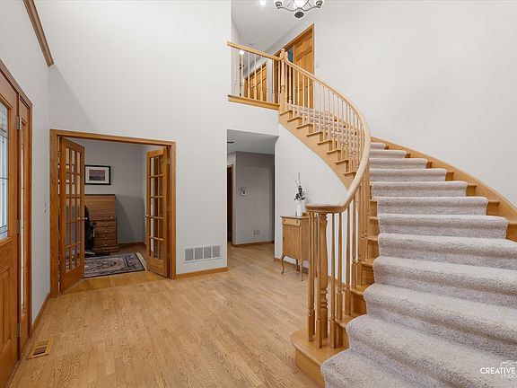 Sitting at the end of a quaint cul de sac, on a Blue Spruce lined 1.13 acres, is your new home! Outside, the custom pergola covers the maintenance free deck. There is also a stone patio with a built in firepit and sitting wall. There are 4 bedrooms including the master suite with its incredibly beautiful, updated full bathroom. This luxury bathroom has a double vanity with quartz counters, updated lighting, a glass enclosed shower with a sliding glass door, a ceramic surround and an accent tile inlay. The other 3 bedrooms have generous closet space and one of the bedrooms even has its own bonus room making it a 'junior suite'. These 3 bedrooms share an updated full hallway bathroom. This unique bathroom space provides so much privacy because there is a wall that divides the double vanity from the glass door tub/shower. There is even a skylight to brighten everything up! These owners thought of everything! The main floor has a kitchen that has stainless appliances, an island with seating, pull out shelves in the cabinets, granite and custom stone backsplash. The focal point of the family room is the gas fireplace with the ceramic surround and the wall of windows that overlooks the beautiful backyard. Rounding out the main floor is a separate laundry room, an office with French doors, updated full bathroom, a living room and a dining room. As you walk up the custom paved sidewalk, into the 2-story foyer where the cascading grand staircase welcomes you, you will know you have arrived! As you tour the home you will notice so many unique features and 'bump outs' making this home truly, one of a kind. Welcome to 17 Red Hawk Ct!