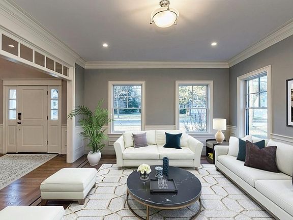An exquisite architect-designed Colonial was completed in the fall of 2018. A generous, welcoming foyer opens to richly appointed formal living areas, perfect for entertainment living. With its high ceilings, loads of natural light and stunning detail, this home offers the perfect balance of richly appointed formal spaces and open comfortable family living areas. Stylish kitchen with bright white floor to ceiling inset cabinetry, professional-grade appliances, oversized island, walk-in pantry and breakfast nook which open to a fire-placed family room adorned with coffered ceilings and custom built-ins. Versatile first-floor study with full bath and a family size mudroom with all the nooks and crannies.Five bedrooms on the second floor including a luxurious fire-placed master suite Wired for surround sound/Sonos. Beautiful, professionally landscaped and irrigated lot with bluestone patio. Backing up to acres of town land/conservation with walking trails leading to Willard's Woods!