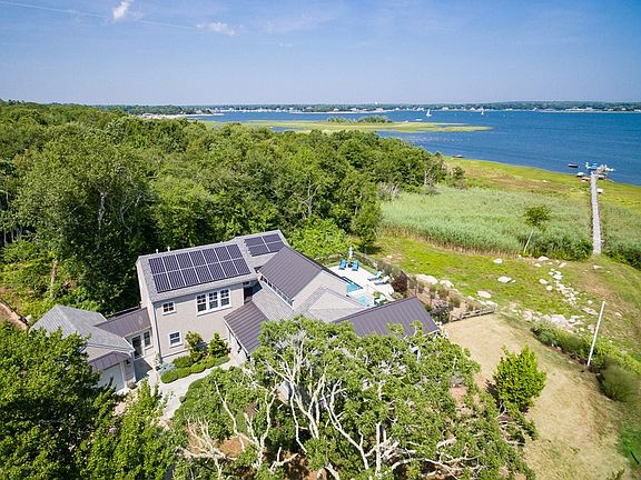 An unbelievable spectacular, private seaside Marion home, of extraordinary distinction, awaits you! Call today for your appointment to see this exceptional architectural detailed 4+bedroom dwelling with rich millwork, which was inspired and thoughtfully designed, by well respected area builders, with today's lifestyle in mind.The newly renovated kitchen adds top of the line gourmet applicances, while the Great Room radiates stunning harbor views incorporating warmth and functionality with a spacious dining area, wonderful sitting area, and french doors leading to an unbelievable deck. The first floor master suite offers traditional elegance overlooking the 12 x 24 gunite heated pool 2016 with beautiful views. The library serves as a retreat with custom built ins and a gas fireplace. Upstairs, streaming with natural light, there are 3 bedrooms, full bath and a balcony overlooking the pool and association dock. Town water/sewer, gas heat, outdoor shower, 18 solar panels 2017, and more!