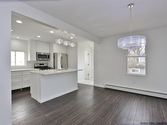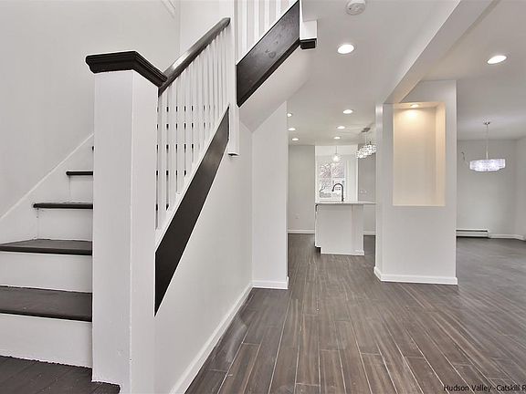 Nestled on a quiet city street with a large yard this charming renovated home is just a short walk to the Downtown Kingston waterfront, shops, eateries and the Kingston Hospital. The distinctive front facade shows off some of the true custom finishings throughout the home. The open front porch has all Trex type decking which is sure to shine for many years to come. As you enter the foyer a towering ceiling and a glowing chandelier light up the room. A wide-open living area marries the kitchen, dining and living rooms together as the new windows flood the area with light. The custom kitchen has all stainless appliances, fresh white cabinets and granite counter tops. There is an island with breakfast bar, great for entertaining or informal meals. A grand staircase leads to the second floor were three nice sized bedrooms and a new full bath are sure to please. The master suite is located on the third floor. It is an open and airy space with vaulted ceilings, built in dressers, a walk-in closet and a luxury bath offering marble laced double sinks and an over-sized walk-in shower. The basement appears to be dry and is usable for a workshop or storage. A new wall mounted natural gas boiler has just been installed, this will also control the hot water. Please see associated doc's for a full list of renovations.
