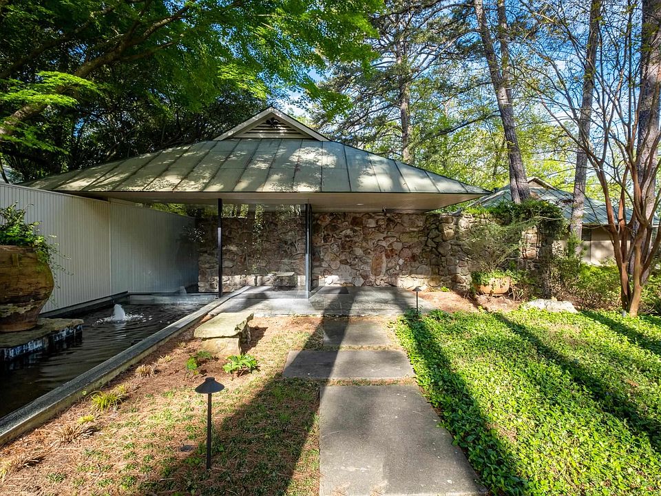 A sophisticated custom designed contemporary on a large lot offering unexpected privacy. The large floor to ceiling window blend the indoors with the outdoors. This three bedroom home has been completely remodeled with a sleek kitchen with beautiful cabinetry,handsome white bathrooms, white pine floors, extensive indoor and outdoor entertaining areas and lovely landscaping. Has a three car rear loading carport, new laundry, new HVAC, new flat roofing, exciting water features and much more. A list of improvements is in booklet on kitchen counter. It reminds you of a piece of art due to its design and composition.