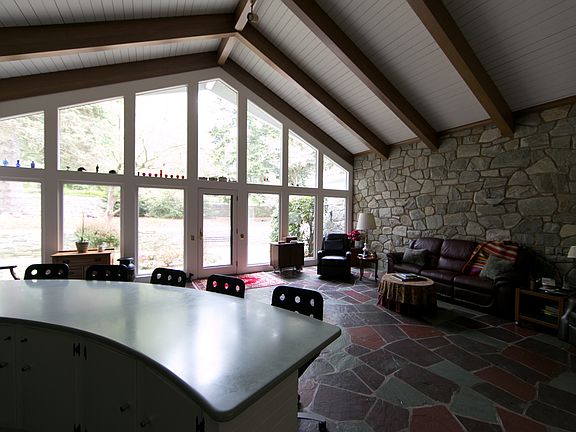 Striking mid-century stone home in sought after School Lane Hills. One floor living with room to relax. Vaulted ceilings, perfect nanny or in-law suite, tons of built ins. Huge bright sunroom with floor to ceiling windows& 2nd full kitchen with gas range. This home was built for family and friends and should not be missed. Spectacular in amenities, features and character. This is a move right in home.