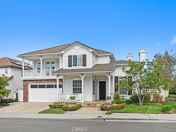 Experience luxury living at 17 Roberts Drive, a distinguished pool residence situated within the coveted Terra Vida community of Coto De Caza. This exceptional corner lot estate features a spacious four-car garage and breathtaking panoramic views of the surrounding hills. Upon entry, natural light illuminates the open-concept living spaces, leading to a welcoming family room featuring a stunning fireplace. This residence boasts 5 bedrooms, with the fifth bedroom currently used as a bonus room without a closet or door, and 4.5 beautifully appointed bathrooms, providing ample space for comfortable living and entertaining. A downstairs bedroom with an ensuite bathroom offers ideal guest accommodations. The gourmet kitchen, a chef's dream, is equipped with white quartz countertops, an expansive island, a commercial-grade farm sink, soft-close cabinetry, and top-of-the-line Dacor stainless steel appliances, including a GE Monogram luxury range and newer panel refrigerator. A convenient seating nook and walk-in pantry enhance functionality, while a nearby bar area with a wine fridge adds to the home's entertainment appeal. Upstairs, a versatile bonus room with a deck provides an ideal space for entertainment. The primary suite is a true retreat, featuring remodeled amenities including a soaking tub, dual vanities, and expansive windows plus a balcony showcasing stunning mountains. Outside, a resort-style backyard oasis awaits, featuring a Pebble Tec saltwater pool and spa, perfect for relaxation and grand gatherings. The rear balcony offers a private, elevated space to enjoy the stunning panoramic hillside views. The home has Tesla owned Solar plus two battery backups. This meticulously maintained estate exemplifies luxurious living, offering the finest finishes and a sophisticated, yet comfortable ambiance. Enjoy access to world-class amenities Coto de Caza Golf and Racquet Club (optional memberships available), equestrian facilities, hiking trails, and more. This is truly a must-see property for those seeking the best of Coto de Caza!