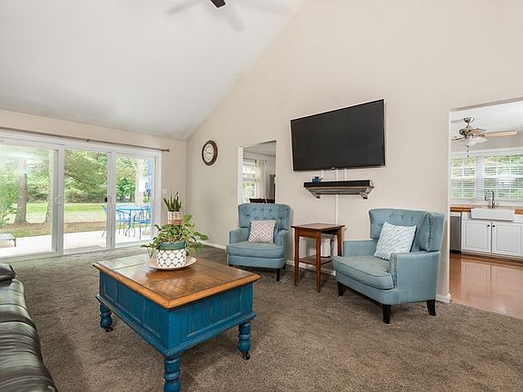 - Features: Cathedral Ceiling(s), Ceiling Fan(s), Flooring - Wall to Wall Carpet, Slider
