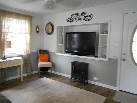 Charming mobile home in Pine Hill Park. Newly renovated (2021) kitchen cabinets, stainless appliances, new countertops, tiled bathroom, laminate flooring throughout, new windows. New furnace in 2021. Great all season room to enjoy all year. Outside shed has electricity. Nice gas fire pit area. For your monthly HOA,of $180.00 monthly, you have basic cable, use of the club house, salt water swimming pool and lawn and road maintenance. This is an ideal retirement community.