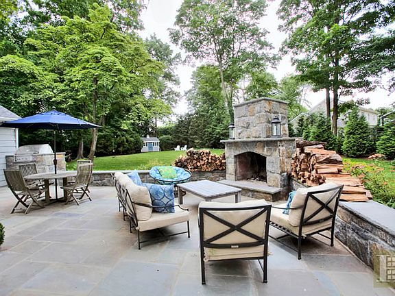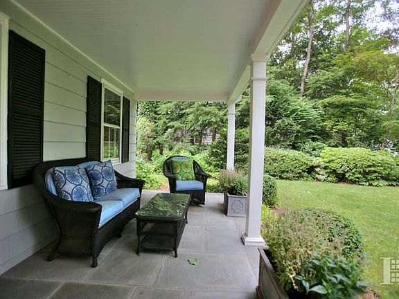 The gracious covered front porch and pretty flower boxes welcome you to this adorable expanded Cape located on one of Darien's favorite neighborhood cul-de-sacs. Truly the heart of the home, the eat-in chef's kitchen w/large island & casual area for dining and entertaining opens to the family room w/tall tray ceiling, cozy window seat and a wall of built-ins. French doors from the kitchen and living room w/fpl lead to the fabulous deck complete w/built-in gas grill & outdoor fireplace overlooking the level .58 acre. There's also a formal dining room and office/5th BR on the first floor. Upstairs are 4 BRs, incl the master w/vaulted ceiling, walk-in closet, dressing area and bath, plus a playroom. All this just minutes from town and train.