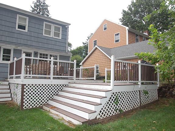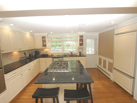 Perfect open floor plan living in this updated cape colonial on pristinely professionally landscaped lot. Living room with raised hearth fireplace opens to custom kitchen that included granite counters throughout; center work island custom cabinets and raised paneling. Master bedroom and family at second level include vaulted ceilings. Master bath is custom built with marble throughout, Jacuzzi tube and separate, marble tiled steam shower. Double vanity with custom built-ins. Oversized deck connects seamlessly with kitchen and interior. Family room could be fourth bedroom. Unfinished basement has potential for expansion. Recently painted