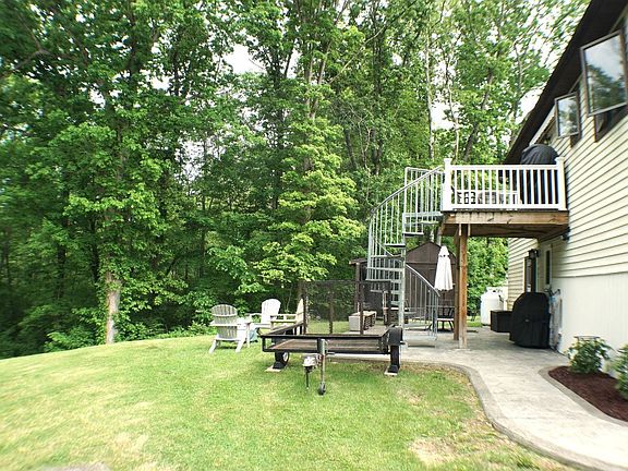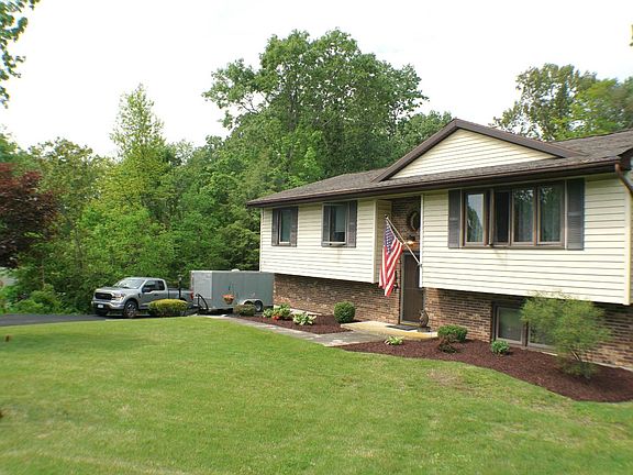 Welcome home to 17 Rose Lane! This well maintained and updated home located on almost 1 acre on cul-de-sac with beautiful landscaping and great backyard. It also offers central air. Nice EIK with pantry and unique wine rack and slider to newer deck with unique spiral staircase to backyard. Master bedroom with connecting door to full bath, two additional guest rooms. Large living room and dining room with beautiful wood, wrought iron and stained glass railing leads you to family room in lower level with wood stove, bath and sliders to patio for summer fun with built in benches. 2 car garage leads to a nice firepit for those cool evenings. A true nice home.