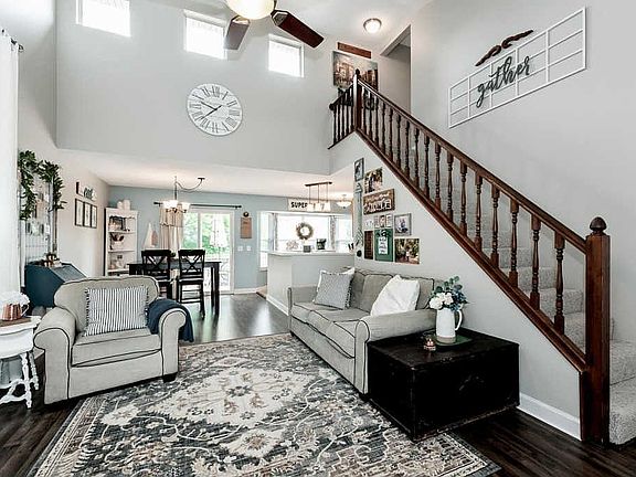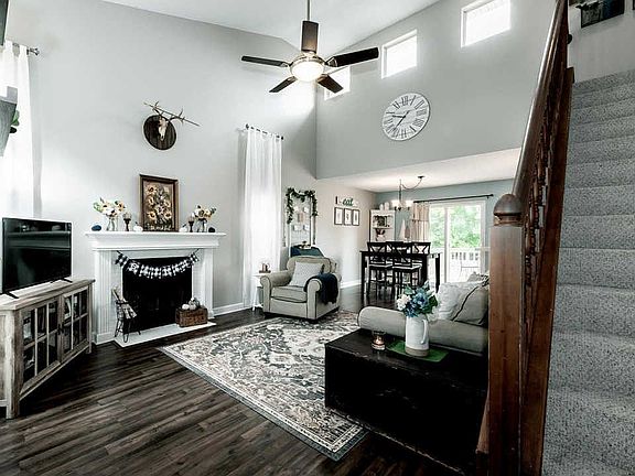 Charming, rustic-style, and oh-so-comfortable! Start smart in this 3-Bedroom, 3-Bath charmer with finished lower level on a quiet cul-de-sac. Step inside to a soaring cathedral ceiling accented by transom windows on both sides of the home, giving a dramatic architectural effect and open-concept charm to the main living area. A cozy living room with newer laminate floors features woodburning fireplace with white, ceramic tile surround and updated tall baseboards. A light, bright and open kitchen boasts a bay window, gas range, and pantry. Privacy is enhanced with divided-bedroom floor plan; master on the main and 2 bedrooms upstairs. Two corner windows in the master bedroom create a light-filled living space. Enjoy a double sink in the master bathroom. The finished lower level expands your living area and your lifestyle, with a rec room and 3/4 Bath. The wood deck begs for guests to enjoy, and a wood fence encloses the level backyard providing a private refuge. See it today!