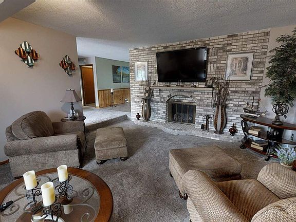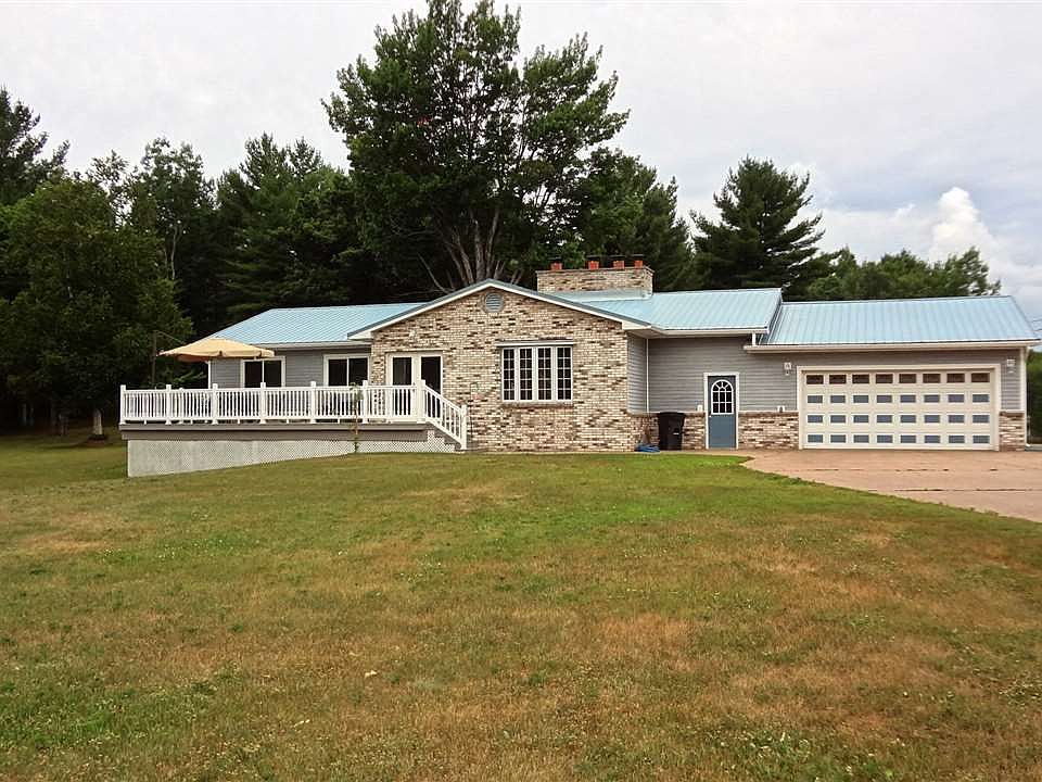 A sprawling ranch style home on 1.28 acres in Sands Township, this home is move in ready with 3 main floor bedrooms and a main floor laundry room! This home is bright and inviting with an open floor plan and huge 4 season sun-room! The front entry is a double door with full glass and welcomes you to the home. A brick surround is central to the home and holds a gas BBQ pit on the kitchen side, a corner gas fireplace in the dining area and another gas fireplace in the living room; a real focal point! The sun-room is at the back of the home and is encased in windows and has access to the backyard, there is a sliding glass door dividing it from the kitchen. The master bedroom is spacious and has an attached half bathroom. The full bathroom is easily accessed from the bedrooms and has a walk-in shower. The lower level of the home is finished into a huge family room and multi-use rooms, great for an office or additional storage. There is a 2 car attached garage that is heated, a storage shed with a convenient rolling door, metal roof, central air, and a front facing deck!