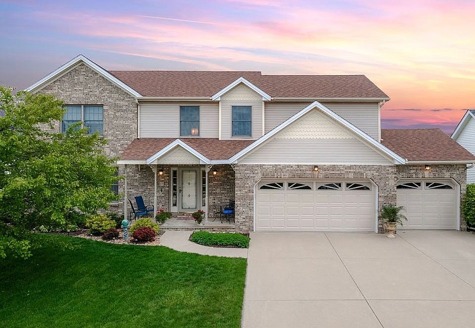 This custom built home is located within Old Farm Lakes Gardens on one of the largest lots. This beautiful home is spacious with a dazzling two story foyer, decorative columns, fireplace, vaulted ceilings, a balcony and so much more! The kitchen has soft closing cabinets, two ovens, a walk-in pantry and a separate eating area. The primary bedroom has cathedral ceilings, two walk-in closets, an ensuite with a jetted tub, separate shower and two separate sinks. You will love the openness of this home but also the privacy it provides! Full unfinished basement with daylight windows and an i beam which allows for an open floor plan if you desire. Some updates include new roof in 2014. Updated flooring in the kitchen, half bathroom, foyer and staircase. New water heater in 2017 and new bathroom window in the master ensuite in 2022.