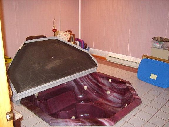 This home has not only been well cared for, it has some great features for a home in this price range. Vinyl replacement windows, vinyl siding, upgraded roof, boiler and hot water tank. And a beautiful room with a sunken hot tub to enjoy after a hard day's work. Beautiful backyard setting backs up to the county fairgrounds for privacy. There is a space heater in the basement.