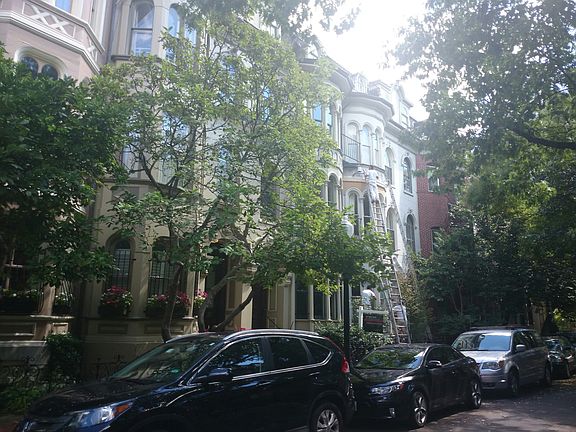 Rare single family located on sought after square with beautiful details throughout. Open kitchen dining and living level. Just renovated kitchen with the finest appliances, cabinetry and granite. Magnificent living room with soaring ceilings and light from two story wall of glass. Spacious master bedroom with walk-in closet. Guest bedroom and gym level with new bath. Top floor family room with full staircase to roof deck with sweeping city views. Home office/library, A/C, garden, and parking.