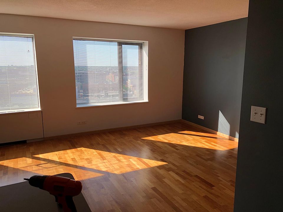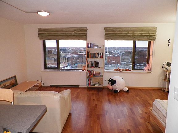 Charming, 17th floor studio, with lots of light and breathtaking view of Downtown and the Mississippi, available now in the River Towers building. Has breakfast counter, full bathroom, and full kitchen (range, fridge, microwave, dishwasher, trash disposer). Cool tech amenities include fiberoptic internet with wi-fi, basic cable, and a Philips Hue wireless lighting system. Convenient location near river front, right on the edge of Mills District and North Loop, one block away from skyway access, convenience and liquor stores next door, Whole Foods across the street, and Lunds across the river (in Northeast). Near light rail and on several bus lines on each street around the block. Walk to Downtown dining and shopping, banks, Nicollet Mall, Main Post Office, Minnesota Twins Target Field, and Target Center. 1.5 miles from University of Minnesota. The list of building amenities includes: - 24 hr staff and security; - huge outdoor courtyard with grills and swimming pool; - fitness center with sauna; - library; - party room; - rooftop sundeck; - tennis courts; - coin laundry in building; - free bicycle parking; - car wash in the underground garage. The place is rather spacious for a studio, has ample storage within the unit and a small (about 12 sq. ft.) storage unit in the basement. Some accompanying photos are after renovation, some before. Guess which one is which! Lease duration of 1 year is preferred, though negotiable. The rent includes water, trash service, heating/AC, basic TV cable, internet, and wi-fi The renter will pay their own electricity bills. One month rent security deposit. Contract parking for an additional cost available with wait list: $110 indoor and $60 outdoor. Building association does not allow pets (service animals are okay with paperwork). Smoking not allowed anywhere inside the building. Building charges renters $150 move in/out fees. Application fee with background check $29 (paid directly to Zillow, will be refunded with the 1st month rent). Screening criteria: clean criminal record and minimal credit score of 700.