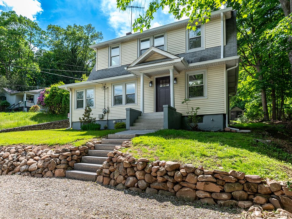 Totally renovated private home on lovely property. This home offers a new kitchen with gorgeous granite counters and stainless steel appliances. Beautiful refinished wood floors throughout. The two bathrooms have been updated. All new lighting fixtures throughout. Freshly painted. Spacious home with living room, formal dining room, plus a bonus sitting room/den with great natural light. Three spacious bedrooms upstairs and two full baths (one on each floor). Plus a basement for storage. Two driveways (front and rear) that can accommodate several cars. Private yard area in front and back. New landscaping. A beautiful home ready to go. Easy access to thruway and shopping. And pet-friendly! In addition to the first month's rent and one month's security, the Tenant is responsible for paying a one-month broker fee at lease signing. Tenant pays gas, electric and water. Landlord maintains lawn and snow removal.