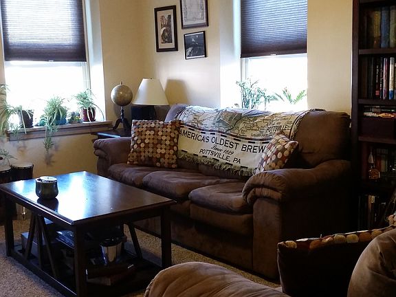 Eat-in kitchen, tiled bathroom with tub and shower. Includes washer/dryer. Large master BR with walk-in closet. Deep window sills. Note this is on Main Street, Quakertown, near McCoole's. Some mapping systems show this address as in Trumbauersville. No smoking. No pets.
