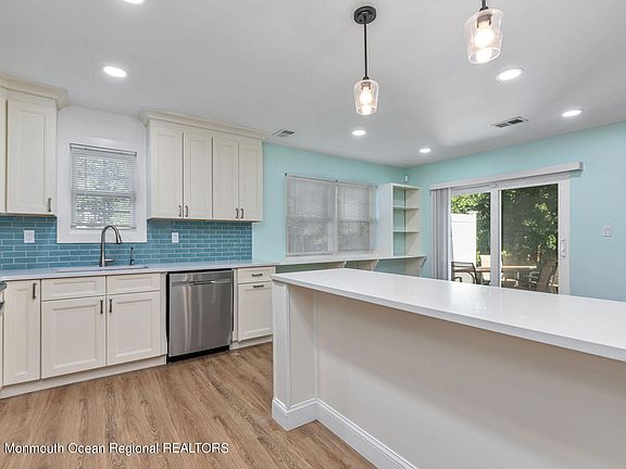 Welcome Home to desirable South Point Townhomes. This end unit home has been recently updated, leaving you nothing to do but unpack and enjoy living near the Jersey Shore! Upon entering you will find all new stylish vinyl flooring throughout, a large living room area, dining area with sliders to the back patio area. The new kitchen includes white cabinets, stainless steel appliances, beautiful vent hood along with gorgeous glass subway style backsplash and quartz countertops. Upstairs you will find a new bathroom, 2 generous sized bedrooms and a master suite with new bath and balcony overlooking private wooded area. This townhome offers lots of storage and is located in a wonderful area. Close to Garden State Parkway, Route 18, The Jersey Shore, shopping and restaurants.