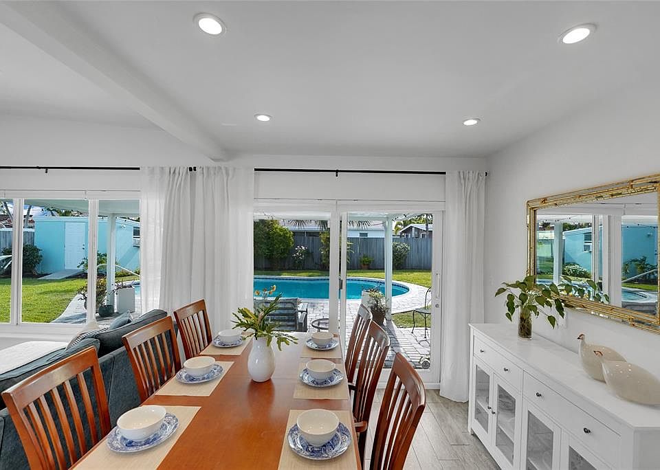 Walk to the BEST BEACH in So Florida! This is it! Your new mid-century modern beauty with sparkling pool views and tropical landscaping, framed by high-impact windows and doors. Paid Off solar panels and a Nest thermostat provide comfort and savings. Solid roof and HVAC, updated kitchen, Smart appliances and beautiful flooring throughout. Fenced backyard, a wonderful covered porch, custom patio and the sweetest pool on the market! A matching cottage provides potential, well-protected—back yard secure. This historical neighborhood with no HOA offers quiet, friendly neighbors. Less than 5-minutes to a “secret” sunrise spot and tons of shops and excellent restaurants. The Women’s Club, Historical Society, Cultural Center and library are nearby. Fresh, clean, solid and move-in ready!!