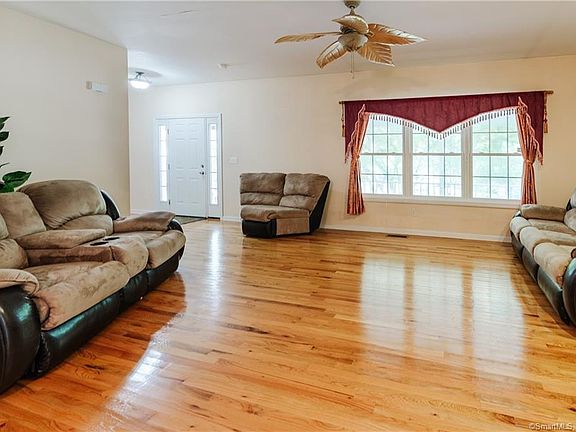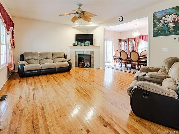 Amazing opportunity for a large family! ThisMove In Ready" Colonial style home with 2 car garage is located on a quietCul-De-Sac and features and open concept kitchen with granite counter tops, living room with a granite fireplace and dining room with sliders to a newly painted deck, gleaming hardwood floors throughout and 1/2 bath. 2nd level features 5 large bedrooms with spacious closets (town records show 3 bedroom and total sq ft 2392, however there is 600 additional sq ft and 2 additional bedrooms) and 2 full baths. Master bedroomfeatures walk in closets and master bath has a jacuzzi style tub, as well as a stand up stall shower. Laundry area in basement withfront loader washer and dryer. Enjoy time sitting on the long country style porch or in the fenced in yard. Conveniently located near I-95 and shopping. This is a lot of home for the price,wont last!