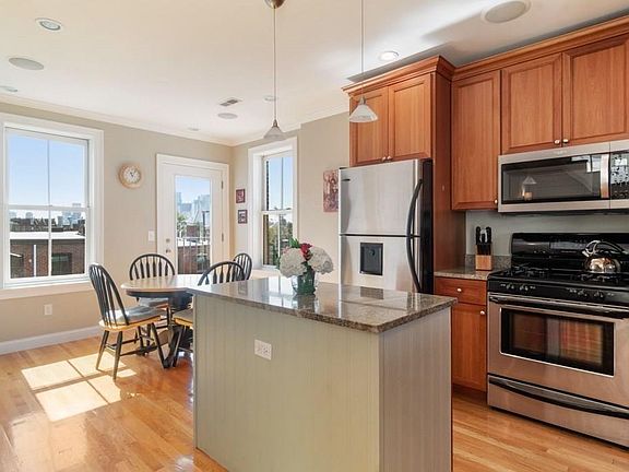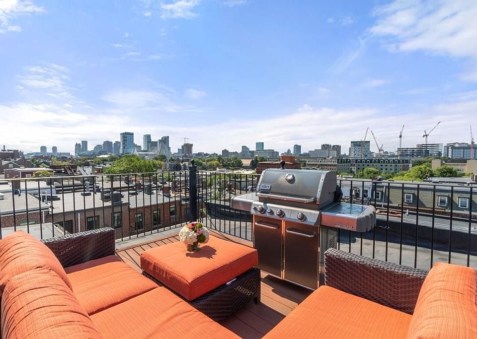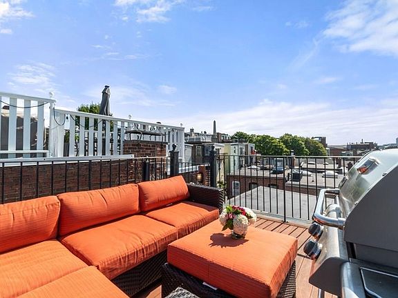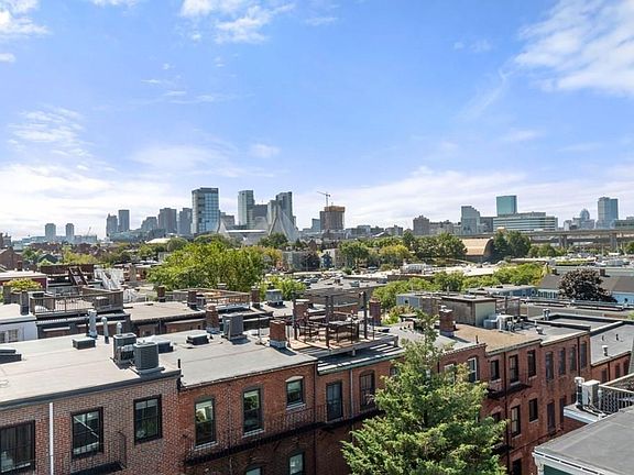 Located on a gas lit street, this stunning 2BR/1BA PH features 870sf of well-appointed living space, a sunny open layout w/three exposures, and an expansive private roof deck w/spectacular views of the Boston skyline and gas line. The elegant living space features a gas FP w/handsome white mantel, flanked by custom built-ins, and two oversized windows. A chef's kitchen w/stainless appliances, granite countertops, prep island, and peninsula w/bar seating overlooks a generous dining space w/expansive City and Zakim Bridge views. The master bedroom is tucked at the rear for privacy and offers three windows, custom built-ins w/window seat, and a closet. The second bedroom w/exposed brick wall, makes the perfect office or nursery. Beautifully updated full bath w/glass enclosed shower w/rain head, and radiant heated floor. Amenities include: C/Air, gleaming HW floors, built-in home audio system, and basement storage w/exterior egress. Centrally located near town center shops and restaurants.