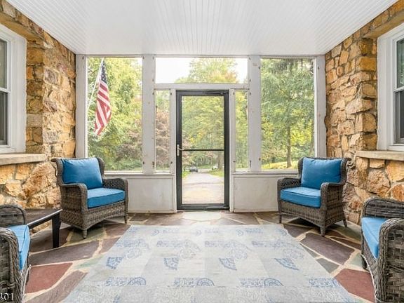 Gorgeous 2+ acres backing to Brays Hill Preserve featuring winter views of Round Valley Reservoir is the site where this exquisitely expanded stone "cottage" (3000+ s f) meets complete farmhouse chic 1st level features updated kitchen, coffered ceilings, vaulted great room with massive beam support, original parquet floors, lr dr wainscoting preserved from NYC mansion, expanded entry foyer with imported fireplace, den with wood burning stove and a beautiful stone patio. Upstairs find 4 bedrooms, huge foyer lounge, 2 full baths, excellent closets plus skylights for dappled natural light. Beyond the main house is a fabulous detached, 3 stall barn with hayloft plus a storybook, screened gazebo on the rolling lawn. New roof skylights baths laundry elec panel w generator connect sunroom list is endless