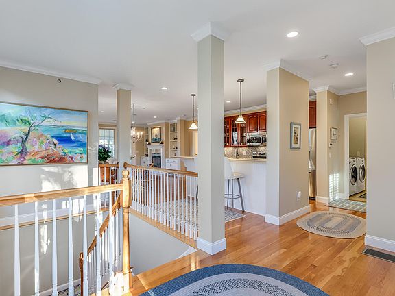 Comfort, privacy, and luxury first-floor living awaits you in this exquisite Hyannisport style home, overlooking Martha's Pond. One of the largest models in Southport, the open floor plan seamlessly blends the living room, dining, and kitchen areas. The large windows throughout the home and 4-season porch allow for plenty of natural light to flow in, creating a warm and inviting ambiance. Immaculate hardwood floors with custom trim, built-ins, and a gas fireplace sets the tone for lovely gatherings. The kitchen has stainless steel appliances, granite countertops and glass tiled back-splash. The primary bedroom suite was designed for convenience, complete with a walk-in closet and main floor laundry. An open staircase leads to the fully finished lower level- complete with wet bar and a huge living area with a covered patio. Additionally, a large bonus room, a work room and full bathroom add even more space. The Southport community offers a wealth of resort-style amenities, including golf, tennis, pickle ball, clubhouse, fitness center, and a heated indoor pool as well as a seasonal pool.