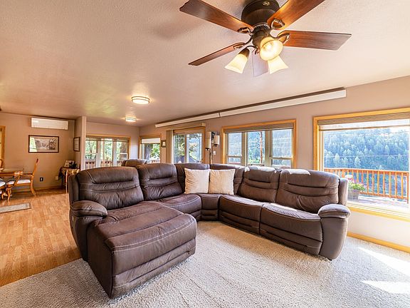 Contact listing agent Angi Varland of Great Peaks Realty. CHECK THIS OUT! - A Picture perfect setting with 3 lots overlooking Historic Main Street. Take a look at this charming 1895 home that has been entirely updated throughout with modern day luxury. 1st – lets notice the HUGE off street parking area and outdoor space with a vantage point of downtown Deadwood unlike any other. The 1-car garage & 2 storage sheds are bonuses. Inside, you’ll enjoy the open layout with custom windows that perfectly frame the views in EVERY DIRECTION! A Gas fireplace adds a cozy ambiance, and the home offers 3 other heat sources. The dining room and den have nice windows each with custom Sunshades, plus sliding doors to the HUGE deck – imagine sipping coffee while soaking in the morning sun! The kitchen is equipped with BRAND NEW appliances, plenty of storage, and access to the rear deck and private back yard. Step out back to the manicured lawn with privacy fencing, rock gardens, and lush trees. Three spacious bedrooms are found upstairs, each with plush carpet, views from every window, and ample storage.