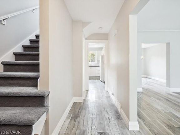 This side-by-side brick and stone facade DUPLEX is a unique find—ideal for multigenerational living or savvy investors. There may be potential to sever into two separate lots, the property offers flexibility and future value. The left unit was fully renovated in 2018, featuring vinyl plank flooring, modern trim, updated kitchen, fresh paint, new lighting, and mostly new windows. The right unit remains in its well-maintained original condition, currently occupied by a long-term tenant. Both units sit on deep, fully fenced lots with parking for three vehicles each. A durable metal roof was installed in 2018. Located just minutes from Chicopee Ski Hill, Hwy 7/8 access, schools, and the amenities of Stanley Park Shopping Centre, this property combines convenience, space, and potential. Note, several photos have been virtually staged.