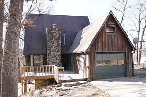 A-Frame style home with large living room, beautifully remodeled kitchen, 4 bedrooms, 2 baths- could open stairway for a 5th bedroom, large open deck, plus detached garage with lots of storage space on the second floor and extra utility room in garage.