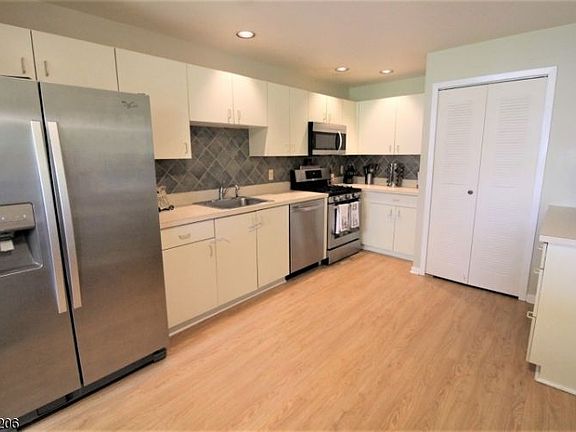 Updated and spacious 2 Bedroom, 2 Bath First Floor Unit with plenty of features! Brand new floors added in hallway and master bedroom, with a renovated master bath and large walk-in closet upon entrance. Open kitchen and dining room, with the living room leading to the outside deck overlooking a sizeable yard - a bonus for play or entertaining! The remodeled basement is great for an additional family room, with a built-in bar section and plenty of extra storage space. Assigned parking with extra parking for visitors. Great walking paths. Amenities include playground and in-ground pool! Close to Rt. 10 shopping centers, city transportation and access to major highways.
