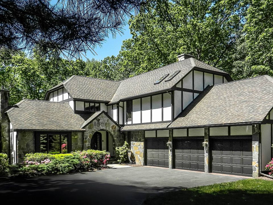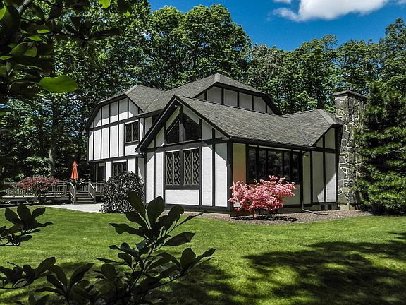 Breathtakingly beautiful, one of a kind, energy efficient English Tudor pulls out all the stops Stunning estate outlined copper gutters and granite walkways guide you through professionally meticulous level landscapes rare lush surroundings all highlighted exterior lighting to capture the visual treasures of the private retreat you are dreaming of, truly an arboriculturist's delight Just past its beautiful stone walls and through its custom front doors your sumptuous new home awaits 1st flr greets you a two story foyer crowned stately chandelier, soaring ceilings, gracious room layouts, masterful floor to ceiling stone fireplace, gleaming hardwood floors, open floor plans and a large kitchen its center island cook top, cabinet up lighting and all leading out to one of your decks through its glass doors. Master bedroom suite boasts a flair of sophistication as it displays a double entry door, brick fireplace, dressing room, glass door to private balcony and a master bathroom you will never leave All bathrooms exude a spa-like essence helping you to relax their many features of marble floors and walls, illuminated onyx vanities and more Outdoor oasis hosts a matching storage shed copper cupola enclosed by a quaint white picket fence. Entertain on your two level trex deck leading to a pink granite patio. Finest of outdoor living as electrical outlets allow for music/sauna/hot tub. Leaving this secluded masterpiece won't be an option,so lets make it yours