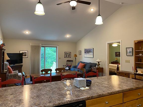 Deadline for highest and best offers due tomorrow, Tuesday, August 22 at 5 PM. Reply from seller will be Wednesday at 5 PM. This two-bedroom condo is spotless, meticulously maintained, and offers 1,220 sq. ft. of single level living space and a garage. Wonderfully designed and quality-built condominium with vaulted ceilings, an open kitchen, dining and living room. There are wood and tile floors, carpeted bedrooms with closet organizers, window treatments and lots of extra lighting features. The master bedroom has a tiled bath and a large walk-in closet. Enjoy the economical gas heat and air conditioning. A large open basement with a bulkhead offering plenty of room for storage. Nicely situated on the cul-de-sac backed by a wooded area.