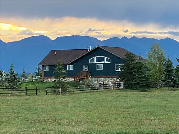 NW Montana's beautiful Flathead Valley! This spacious Sky Ranch home sits at the base of the stunning Rocky Mountains. The 360º views include Whitefish Mountain Ski Resort and the private community airstrip, which is available to the residents and their guests. Surrounded by ranch-style properties, horses are welcome by the community and the lush five acres provides ample feed over the warmer months. With two of the acres irrigated, the lawns stay green all summer. Elevated porches offer the perfect aspect to take in the idyllic setting. The contemporary kitchen contains granite countertops, stainless fixtures, and hickory cabinets. Downstairs 9' ceilings and the main living vaulted 12' ceiling give the home a very spacious feel. Radiant floor heating across four separate zones including the garage, makes the winters warm and cozy. The neighbors and community are friendly and welcoming; inviting all to participate in community events. See Supplemental Remarks... The house was professionally painted last August 2023. The exterior is in excellent condition. The construction, insulation, thermal windows, appliances and fixtures ensure a comfortable mountain living experience. A new gas boiler provides endless hot water. The house is wired for a backup generator. The 1000-gallon LP tank easily runs the gas appliances including the oven. Two mini splits offer supplement heating and ample cooling in the summer months. The asphalt driveway has plenty of room for trailer, RV storage, and parking for multiple cars. Raised garden beds perform well for anyone with a green thumb. By finishing the in-floor heated garage, you could expand the living area by 728 sq.ft. Call Deb Mills at 406-250-4747 or your Real Estate Professional.