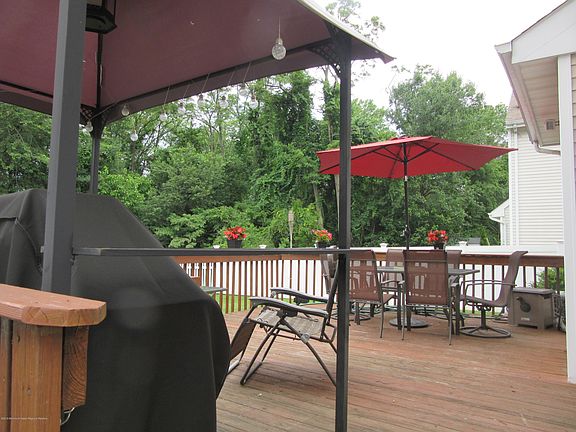 Move right in to this Hazlet colonial home which includes a One Year Home Warranty! CAN CLOSE QUICKLY! . The first floor features hardwood flooring throughout. The open floor plan includes the Kitchen with large wrap around Island, plenty of counter and cabinet space, additional pantry, and tile backsplash. The 18 foot ceiling and skylights in the family room really brighten up the open room and make it an ideal set up for entertaining. Also large formal Diningroom., livingroom, and powder room on the first floor. Upstairs you will find the Master Suite with custom walk-in closet and oversized master bath. Two additional bedrooms and full bath,as well as the conveniently located washer and dryer, complete the upstairs.Large fenced in yard