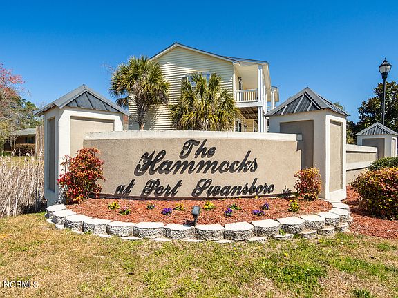 The Hammocks/ Port Swansboro is a unique one of a kind subdivision. Gated community with a Charleston style vibe. Balconies on the front and back of this beautiful unit. Back porch has been screened in. Large open living area with half bath downstairs. Kitchen has lots of cabinet and counter space. 2 bedrooms up stairs with full private bathrooms. LVP throughout, beautiful runner up the steps. This sought after community offers a lovely pool and clubhouse!
