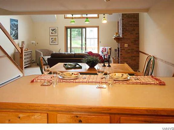 Truly ski in/ski out at The Woods. This 3 bdrm/2 bath unit sleeps 9 comfortably. A handsome, brick wood burning fireplace warms living area w/ cathedral ceiling. Sliding glass door leads to deck w/ view of Sunset chairlift. Spacious kitchen w/ ample work area, breakfast bar & pantry for more storage. Master suite in upstairs loft w/ large tub. Downstairs: 2 bdrms w/large closets, bath & laundry. Tiled entry has great indoor storage for ski gear. Ski locker outside. Updates: gas heat, dishwasher,dryer,carpet,most windows, siding & deck. A Must See! Special Assessment is paid off.