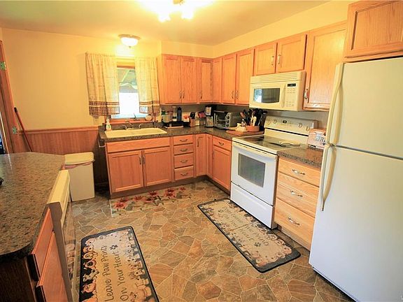 So many updates have been done to this 3 bedroom 2 bath ranch. New windows, insulation, new drywall and ceilings throughout. High efficient furnace, updated 200 amp service. Bright and cheery kitchen comes with all appliances. Living room and family room gives extra living space. 2 full baths, full basement, covered rear patio and nice yard. Large storage shed with electric and full size door. Great house and nicely located on dead end street.