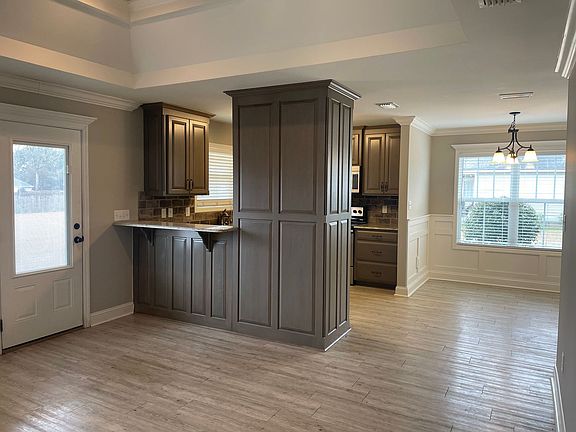 This 3 bedroom, 2 bath home was built in 2013 on 1/2 acre lot in Lakeland, GA. Step inside the front foyer entrance with vaulted ceilings, exposed beams, and hardwood flooring setting the stage for this cozy, well portioned floor-plan. The living room, breakfast room, and kitchen are open providing the perfect spot for family gatherings. The kitchen has custom cabinetry, granite countertops, and stainless steel appliances. The master suite has a double sink vanity with granite countertops, shower, garden tub, private water closet, and a walk-in closet. This home also boasts a 2-car garage and covered back porch.