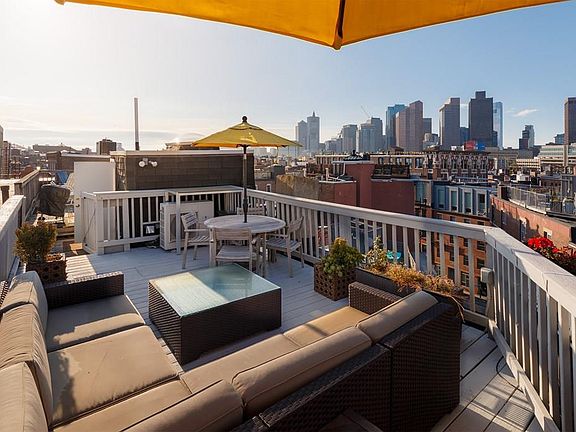 Penthouse One Bedroom plus dining room, office, den or nursery. This sun drenched floor through corner unit features 10 windows throughout plus a private roof deck with a priceless 360 view Boston. Renovated in 2014, updates include granite counter tops, tile back splash, Kitchen Aid stainless steel appliances, gleaming hardwood floors throughout, built-in bookcase and bathroom with comfort height vanity & Granite counter top, Additional features include recessed lighting, double ELFA organizer closets, in unit W&D & mini-split air conditioner. Conveniently located just moments from Hanover Street, Haymarket/ North Station T stops, TD Garden and the highly anticipated "Hub on Causeway". Enjoy the North End lifestyle that will now include The Hub on Causeway which will be home to Boston's largest supermarket, restaurants, entertainment and retail businesses.