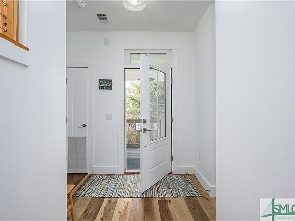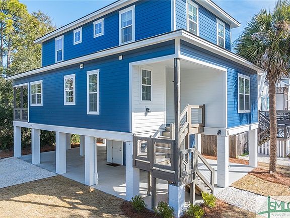 Discover modern coastal living in this new home on Tybee Island. Built in 2022 this elevated home is located on Tybee’s North End and is an easy walk to North Beach and the Arts District. Enjoy ample parking for your toys and cars beneath the home. Enter via the covered parking or the front staircase leading to the front door. The main level features a spacious primary suite with a large bathroom, double vanity, walk-in shower, and convenient laundry room. The open-concept kitchen is a chef’s dream with stainless steel appliances, tasteful cabinetry, quartz countertops, and a large island ideal for entertaining. The living and dining areas are filled with natural light from the upstairs skylights and open to a large covered porch overlooking a serene wooded area and tidal creek. There is a half bath on the main level. Upstairs, two generously sized bedrooms share a stylish Jack-and-Jill bath. This home is the perfect retreat for those seeking both tranquility and modern amenities.
