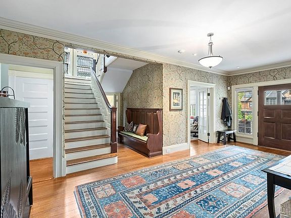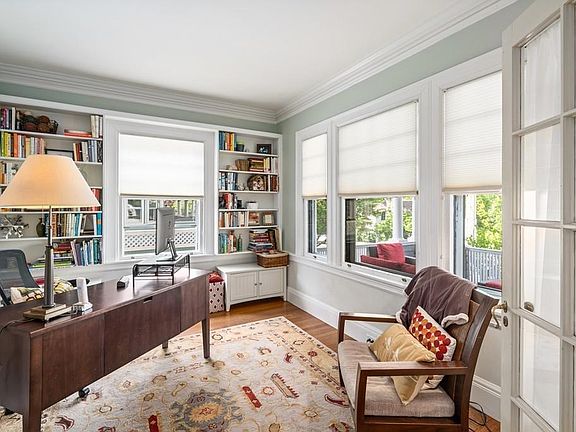 A+ LOCATION! - Exceptional quiet tree lined street in West Newton Hill. This well maintained home features a large welcoming foyer which leads to a sun-filled family room and dining room, butler's pantry, kitchen and mudroom as well as office. The grand staircase leads to a second floor master with its own bath, bedroom, sitting room/gym, and walk-in closet. The second and third floors feature four more bedrooms with two more full bathrooms. Original details include stained glass, stunning woodwork, and 4 fireplaces. Walkout basement with high ceilings has great potential for more living space. Large front porch, new deck, stone patio and landscaped gardens make for ideal outdoor living. Minutes to MA Pike and I95/128 and walk to shopping, commuter rail.