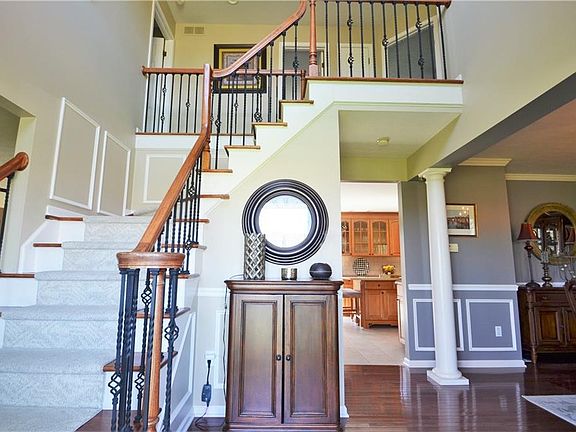 WOWZA! First impressions say it all! GORGEOUS 2 story foyer w/custom railing & turned staircase! GLEAMING hardwood floors! SPACIOUS great room w/gas fireplace & an OPEN dining area - complete with columns and wood trimmed picture boxes! BUT...step into the KITCHEN! SPACE Galore w/ BEAUTIFUL maple cabinets, granite counters & TONS of storage! Bonus island too! Super convenient WALK IN pantry, 1st floor laundry & updated powder room round out the 1st floor! Enjoy a DELUXE master suite w/JACUZZI tub, shower & double sink vanity w/tiled backsplash! The lower level has great rec space w/workout area, media center & a powder room to boot! Plus room to enjoy a summer BBQ on the composite deck w/covered gazebo AND a firepit area to boot! VALUE packed! Delayed negotiations until 5/7/2020 at 6pm