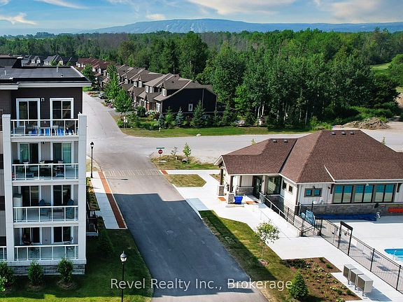 Discover your Collingwood escape, where every day feels like a vacation. This 1,015 sq. ft. 2-bedroom plus den condo combines comfort, functionality, and stunning views in one inviting space. With bright south-west exposure, you'll enjoy seasonal golf course views and a perfect vantage point over the outdoor pool from the expansive 8 x 17 balcony, complete with a gas BBQ hookup.Inside, the open-concept living, kitchen, and dining area is highlighted by 9 ceilings, custom Hunter Douglas blinds, carpet-free flooring, and a stylish kitchen featuring granite countertops, a gas stove, stainless steel appliances, and an upgraded Whirlpool fridge. Convenience is key with in-suite laundry. The primary bedroom offers a walk-in closet and private ensuite, and every room is designed to maximize natural light and capture a view. Living here is about more than just the home; its about the lifestyle. Start your day with a workout or run at the clubhouse fitness centre, spend summer afternoons by the pool, cycle the Georgian Trail, take in the boats on Georgian Bay, or hit the slopes at Blue Mountain in winter. Underground parking keeps your vehicle clear of snow, while a heated breezeway ensures safe, ice-free access. For added convenience, a 5 x 7 storage locker is located right beside the unit.With Georgian Bay, golf, shopping, restaurants, and year-round community events only minutes away, this is the perfect place to enjoy Collingwood in every season. Maintenance fees include access to the outdoor pool, fitness centre with accessible shower/change facilities, and all common elements.