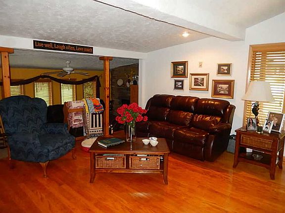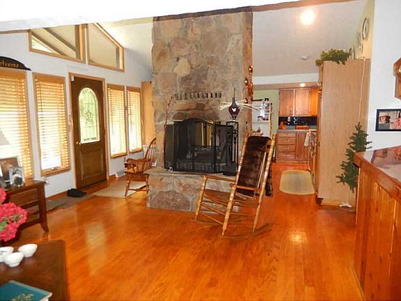 Ideal mountain home on 3 level lots offering privacy. 4 bedroom multi level with gorgeous hard wood floors and generous space throughout. Beautifully updated with 3 year old aluminum roof. Newer HVAC, Open floor plan, Vaulted ceilings. sunken dining room with stone fireplace. Nice kitchen with stone fireplace opens to living room with bar for entertaining. Sun Room with a great view of your private back yard, 4th Bedroom or Den. Gorgeous fireplaces, Huge covered front porch for relaxing on nice days or evenings. Huge rear deck, out buildings. Master bedroom with fireplace and unique full bath. Nicely landscaped too!